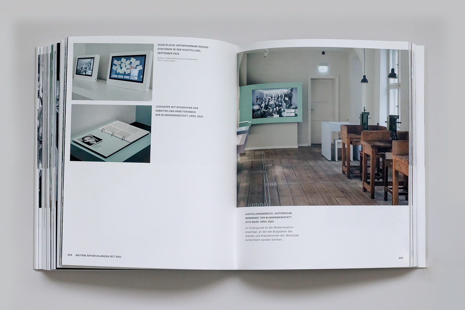 Fotografie der Ausstellungsräume und der Publikationen