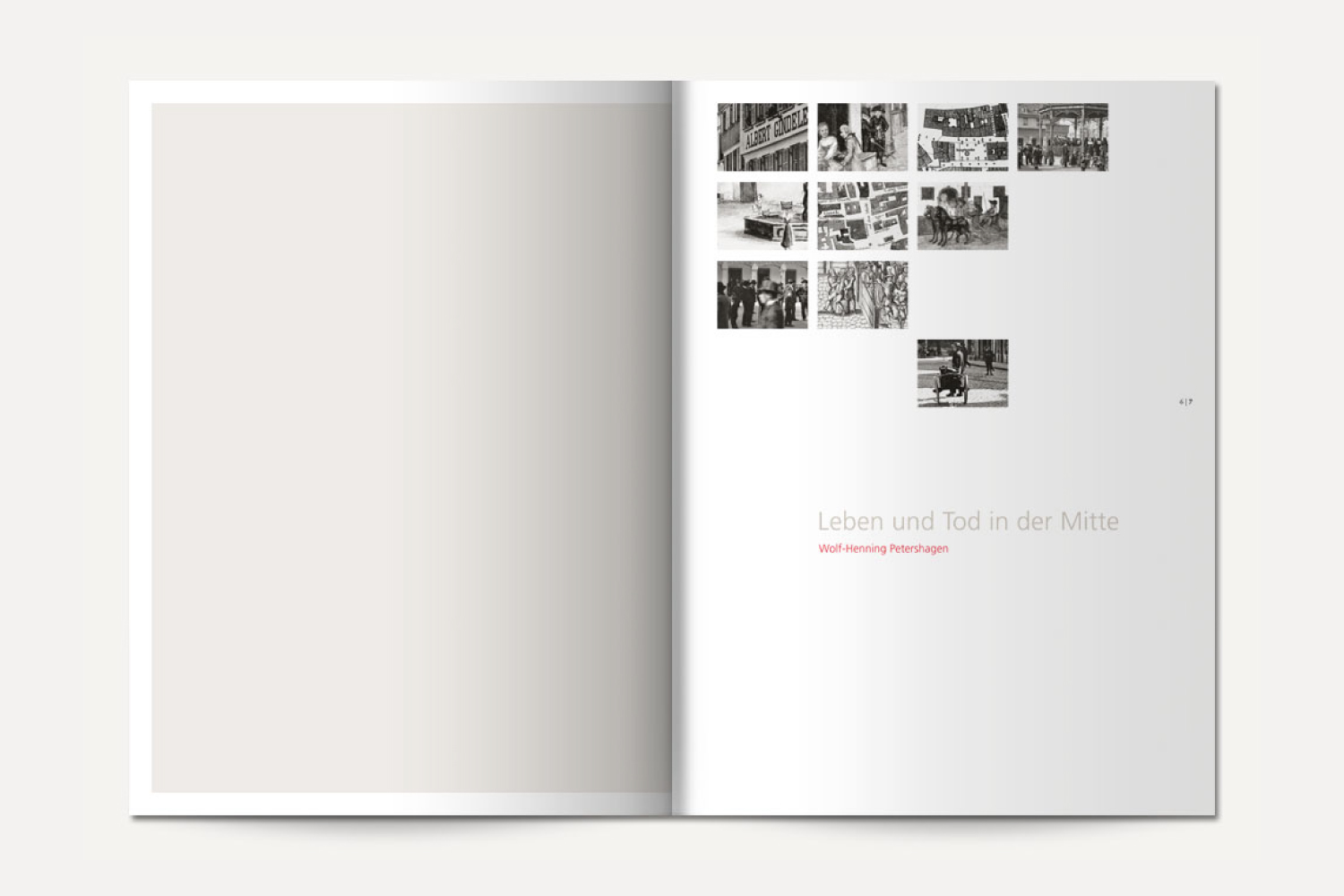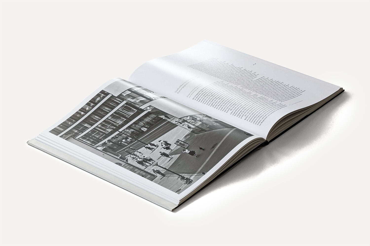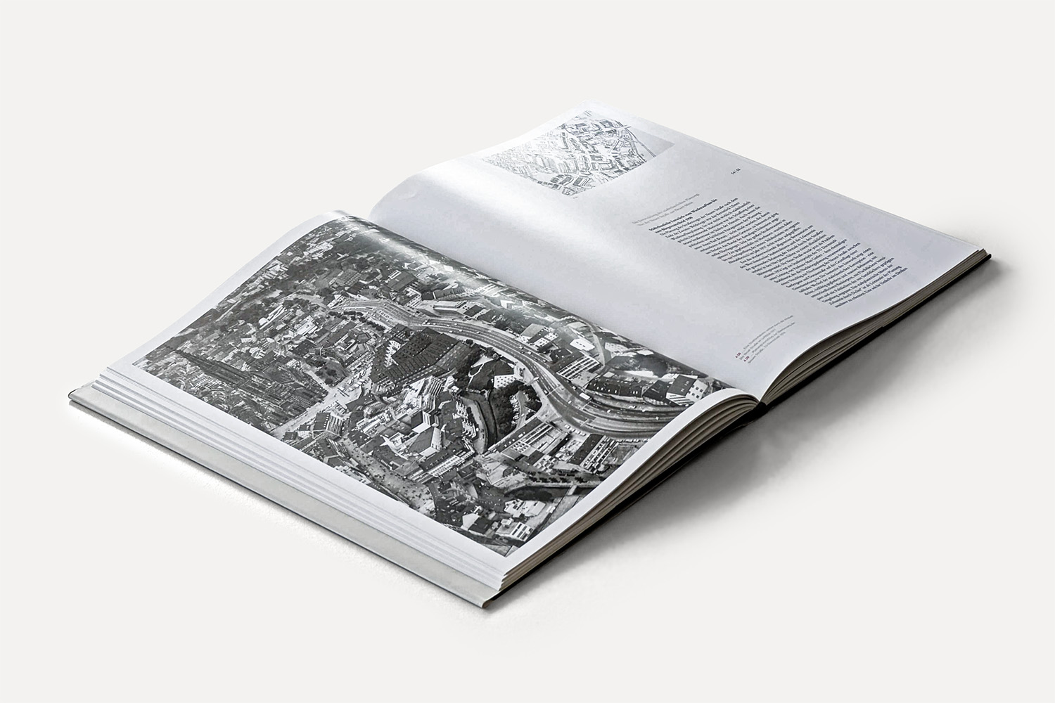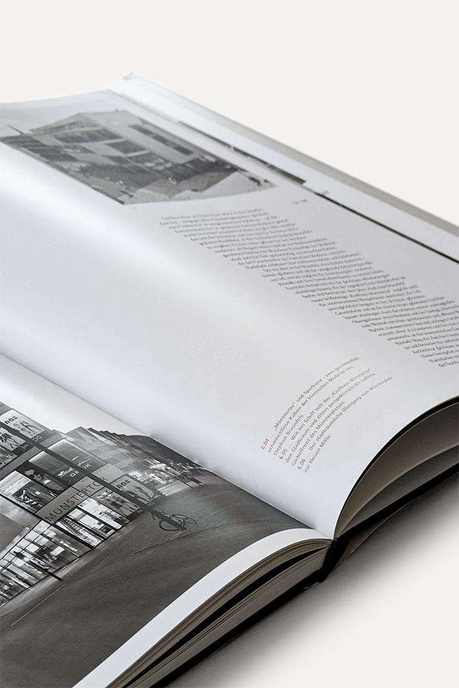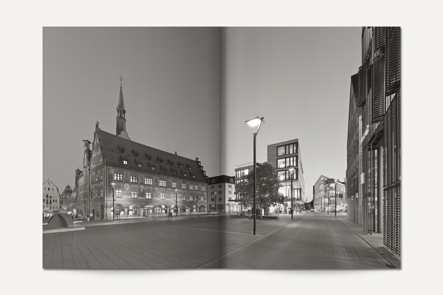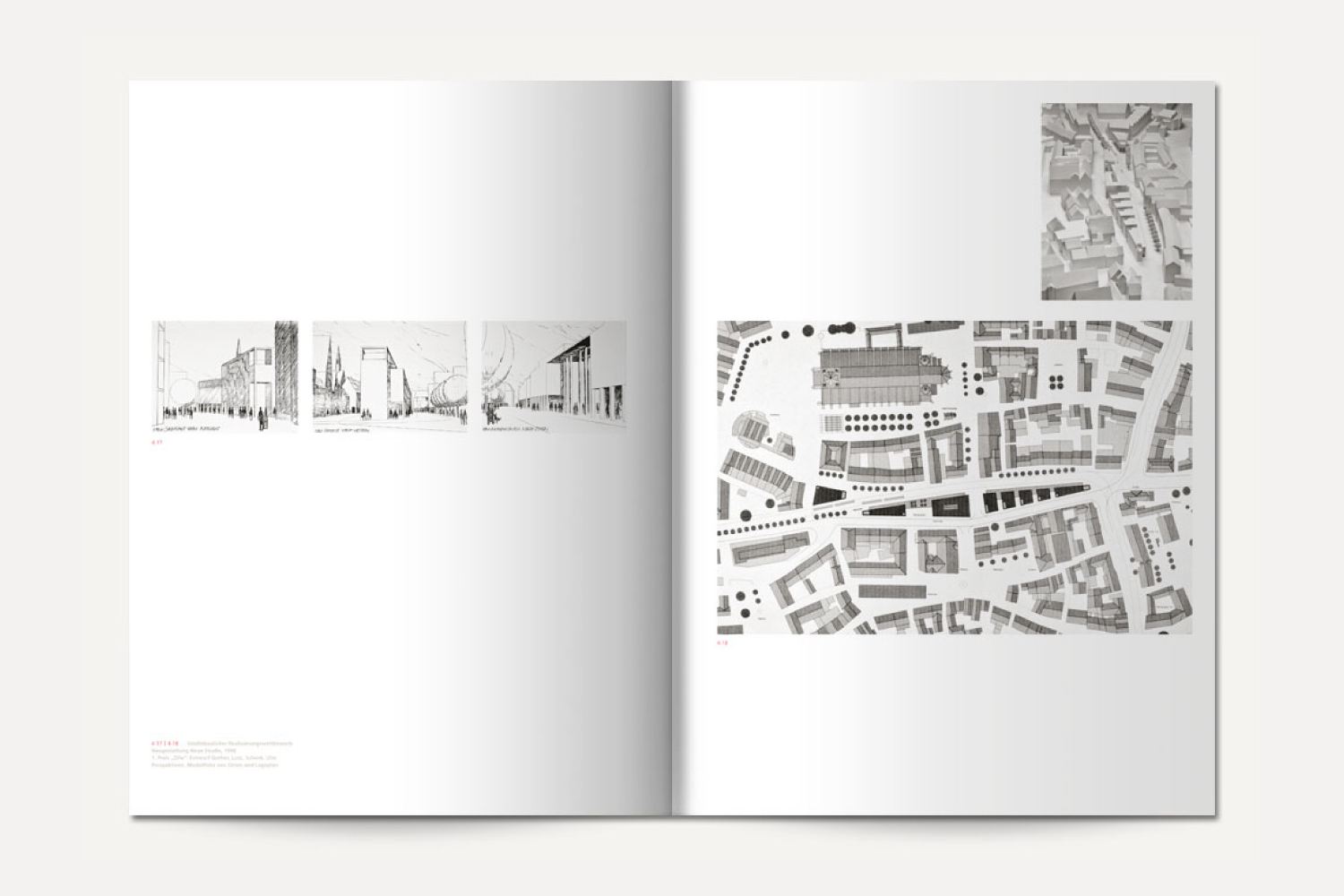 Das Buch beleuchtet die unterschiedlichen Ideen, Themen und Entwicklungsphasen der Neuen Mitte in Ulm im Laufe der Jahre. Die Gestaltung folgt einer klaren Struktur und einer einheitlichen Farbwelt, die nur durch Rot als bewusst gewählte Akzentfarbe aufgebrochen wird.
