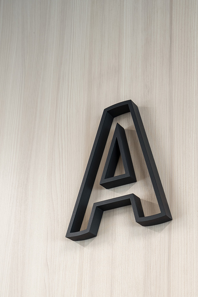 Der deutliche Hell-Dunkel-Kontrast und die klare Formensprache ermöglichen eine schnelle Orientierung und gute Lesbarkeit, während sie dem System ein zeitgemäßes Erscheinungsbild verleihen. Die Eisenglimmer-Lackierung der Rahmen verleiht den Elementen eine subtile Materialität, die sich harmonisch in die neue Architektur einfügen.