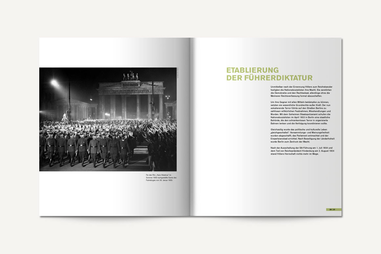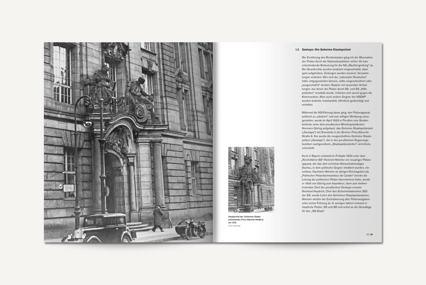 Die Ausstellungskataloge vermitteln die Inhalte der Ausstellung sowie die Geschichte des historischen Ortes, an dem sich von 1933 bis 1945 eine der wichtigsten Einrichtungen des nationalsozialistischen Terrorapparats befand.